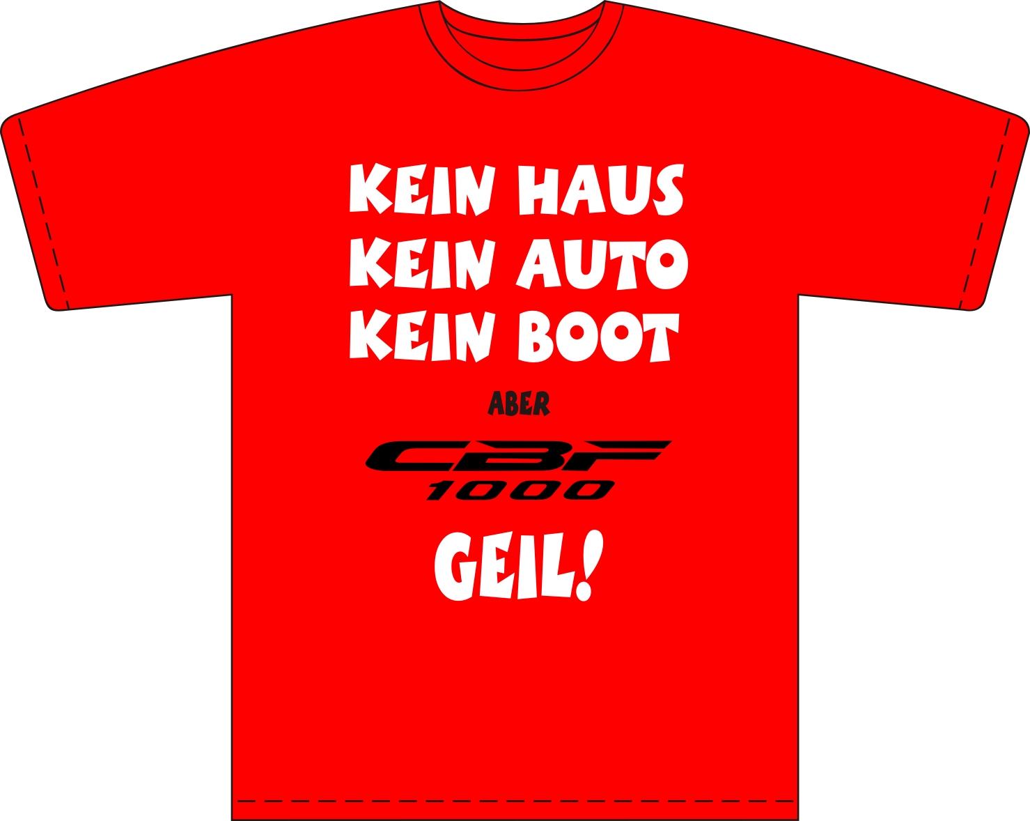 Einseitig bedruckt mit Fun-Druck "Kein Haus, Kein Auto, Kein Boot...aber CBF-1000", vorn oder hinten